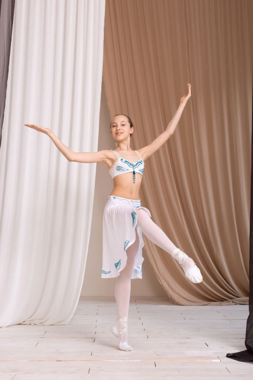 Каждое занятие строится методично и последовательно: от разогрева и развития физических данных до освоения базовых и усложнённых элементов классического танца.