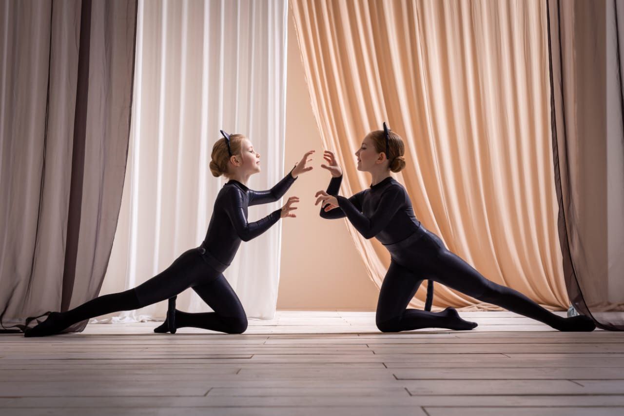 Тренер внимательно следит за правильной постановкой корпуса, рук и ног, помогает детям развивать гибкость, работу мышц корпуса и выворотность в безопасном режиме.